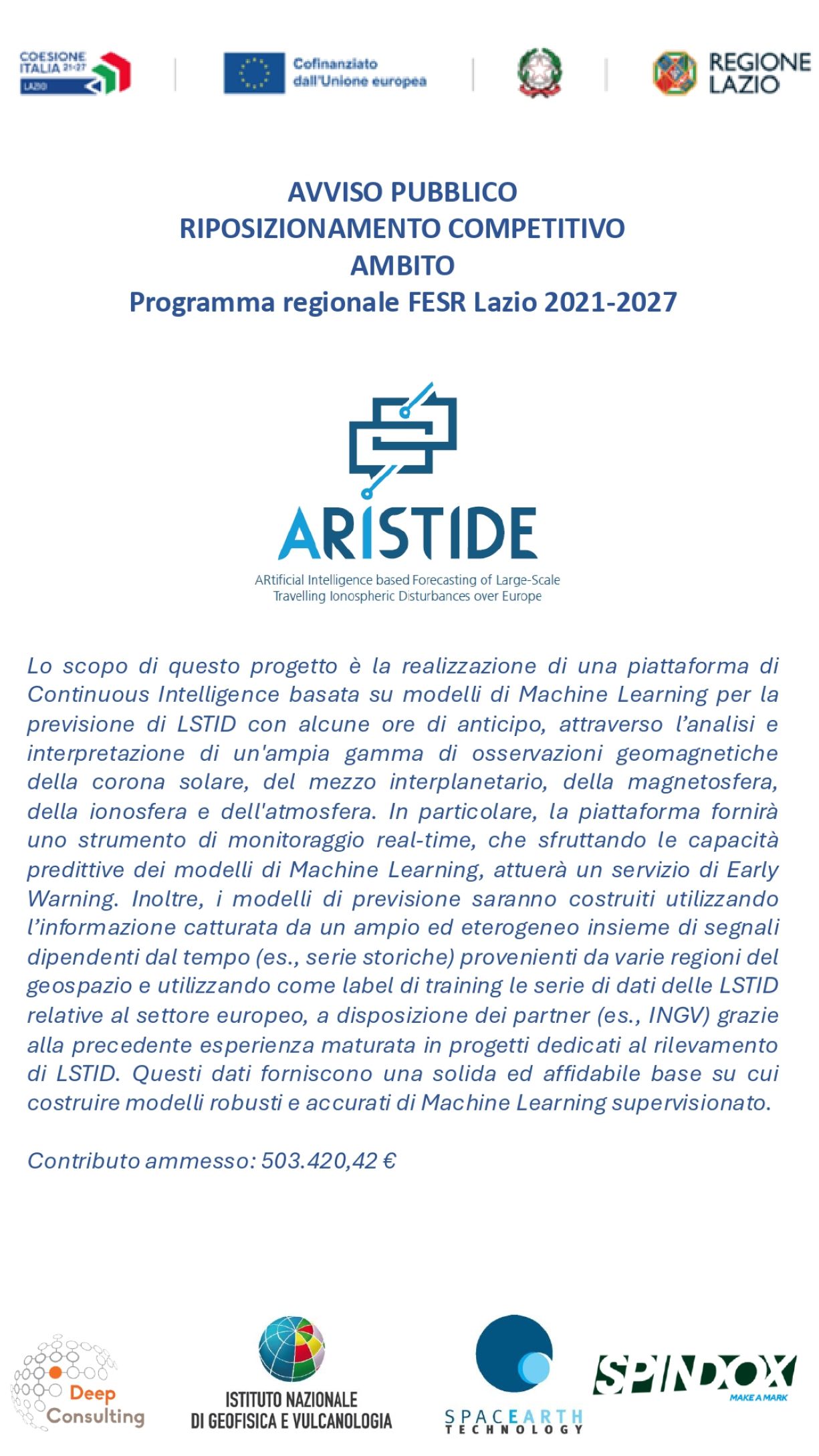 Artificial Intelligence based Forecasting of large-scale Travelling Ionospheric Disturbance over Europe - Avviso pubblico Riposizionamento Competitivo Ambito Programma regionale FESR Lazio 2021-2027